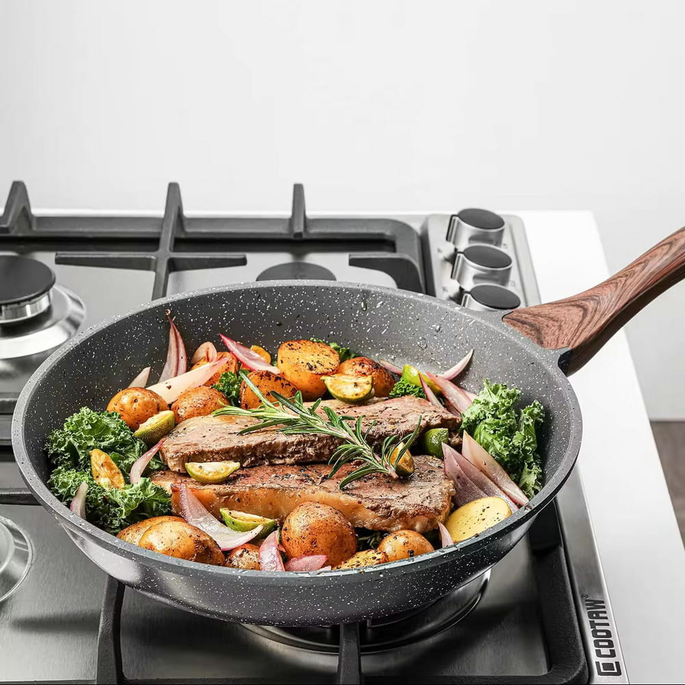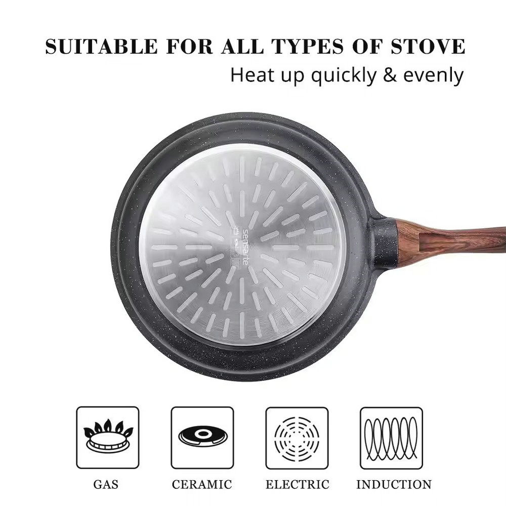 Alat memasak pelbagai guna kuali dalam nonstick tersuai dengan pemegang kayu